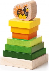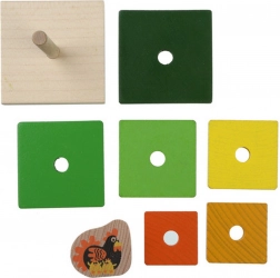 Drevená pyramída so sliepočkou je nadčasová vzdelávacia hračka, ktorá deti hravou formou zoznamuje s tvarmi, veľkosťami a odtieňmi. Osem pevne opracovaných dielov sa skladá na kolík do pravidelného tvaru pyramídy, pričom si deti precvičia triedenie podľa veľkosti aj farieb a zlepšia koordináciu oko–ruka.