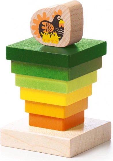 Objavte kvalitnú drevenú skladačku pre najmenších – farebnú pyramídu so sliepočkou od CUBIKA. Hračka z ekologického javora a buka podporuje jemnú motoriku, logické myslenie a poznávanie farieb. Diely sa skladajú do tvaru pyramídy v plynulej farebnej postupnosti a rozvíjajú koordinačné zručnosti aj kreativitu. Bezpečné farby na vodnej báze, európska výroba a certifikácia TÜV podľa EN 71.