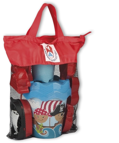 Táto pirátska sada na piesok od ANDRONI poteší malých dobrodruhov aj rodičov. Všetko je prehľadne uložené v praktickej cestovnej sieťovanej taške, ktorú ľahko vezmete na dovolenku aj na ihrisko. Vďaka dôrazu na bezpečnosť a kvalitu vydržia jednotlivé diely aj náročnejšie zaobchádzanie a podnecujú fantáziu pri stavaní hradov a pirátskych dobrodružstiev.
