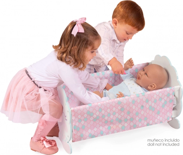 Roztomilá drevená kolíska pre bábiky z kolekcie OCEAN FANTASY očarí jemnými pastelovými farbami a motívom malej morskej víly. Ponúka kvalitné spracovanie, stabilnú konštrukciu a španielsky dizajn. Súčasťou je ružový vankúšik, ktorý doplní pohodlie bábiky. Ideálny doplnok do dievčenskej izby na kreatívne hranie a starostlivosť o bábiky.