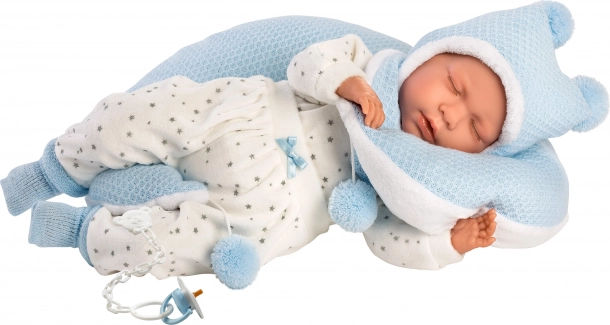 Táto štýlová súprava oblečenia pre bábiku NEW BORN LLORENS vo veľkosti 40–42 cm prináša všetko, čo deti potrebujú na kreatívnu hru a starostlivosť o „bábätko“. Mäkké textílie v príjemnom modro‑bielom ladení a detailné spracovanie zabezpečujú skvelý vzhľad aj pohodlné obliekanie. Praktický dojčiaci vankúš podporuje realistickú hru a rozvoj jemnej motoriky.
