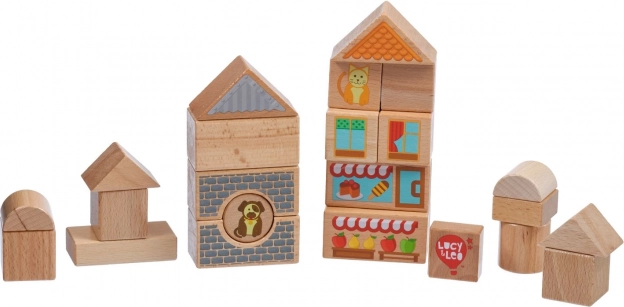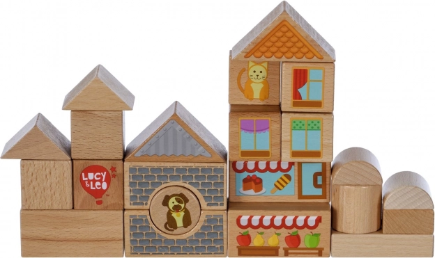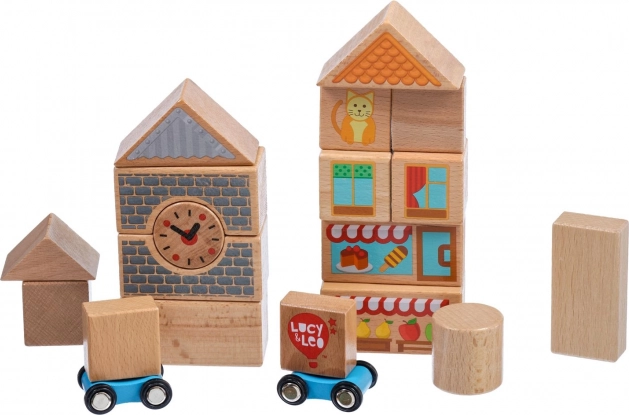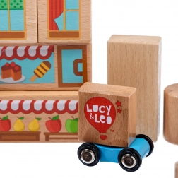 Objavte čaro kreatívneho stavan ia s drevenou sadou Lucy & Leo mesto. Sada obsahuje 25 kvalitných drevených dielov vrátane 2 pojazdných autíčok, rôznych tvarov a farieb na stavbu domčekov a uličiek. Ilustrované prvky ako okná, strechy a výklady obchodov podnecujú fantáziu a tematickú hru. Hračka podporuje jemnú motoriku, logické myslenie a kreativitu a po hraní ju ľahko uložíte do praktického okrúhleho boxu s vekom a držadlom.