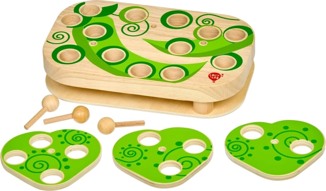 Vďaka 9 vymeniteľným predlohám a otáčavým listom možno náročnosť prispôsobiť veku aj zručnostiam dieťaťa. Hra je povrchovo upravená bezpečnými, netoxickými farbami odolnými voči slinám a menšie diely ľahko uložíte do ľanového vrecka.