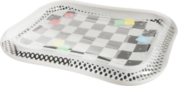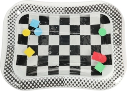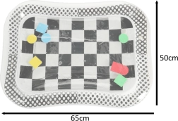Objavte kontrastnú vodnú podložku, ktorá nielen zaujme vaše dieťa, ale zároveň podporuje jeho senzorický a motorický vývoj. Táto podložka s čiernobielym šachovnicovým motívom obsahuje plávajúce farebné geometrické tvary, ktoré sa pohybujú pri dotyku dieťaťa.