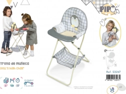 Skladacia jedálenská stolička pre bábiky Pipo 2022 je súčasťou novej kolekcie roku 2022, ktorá prináša rôzne druhy kočíkov a nábytku pre bábiky a ďalšie doplnky. Ponúka nádherný dizajn a jednoduchú manipuláciu.