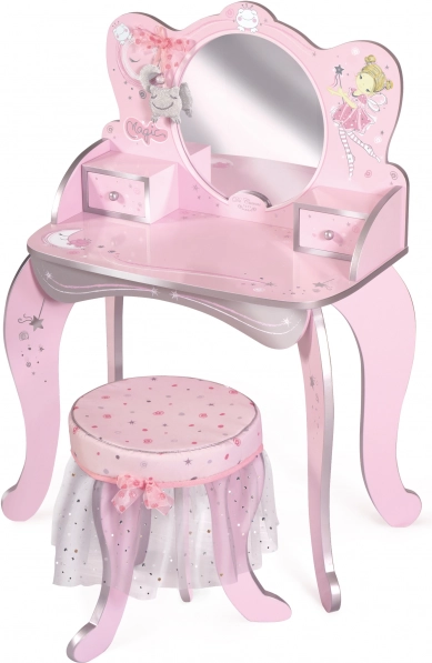 Tento drevený toaletný stolík je inšpirovaný rozprávkou a je ideálnym doplnkom do každej dievčenskej izbičky. Je dekorovaný krásnymi potlačami a obsahuje