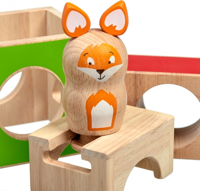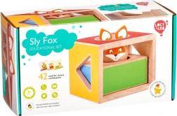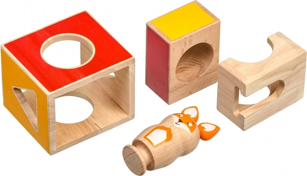 Táto drevená vzdelávacia hra obsahuje tri masívne kocky s výrezmi rôznych tvarov, drevenú figúrku líšky a sadu obojstranných kariet s úlohami rôznej náročnosti. Deti podľa predlôh stavajú a kombinujú kocky tak, aby sa líška správne „schovala“, čím trénujú stratégiu a priestorové vnímanie.