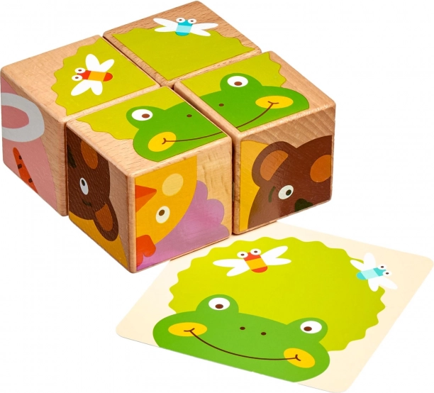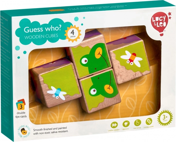 Sada štyroch drevených kociek LUCY & LEO s veselými zvieratkami a ich obľúbenými maškrtami rozvíja detskú fantáziu, jemnú motoriku a logické myslenie. Z kociek poskladáte až 6 rôznych obrázkov podľa predlôh. Hračka je z kvalitného dreva s bezpečnou povrchovou úpravou, ideálna pre malé deti od 3 rokov. Učenie hrou, precvičenie farieb, koordinácia oko–ruka a zábavné skladanie puzzle v jednom.