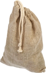 - Drevo, ľanové vrecúško, farebné šnúrky