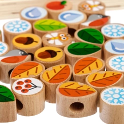 Hračka je inšpirovaná montessori princípmi – rozvíja logické myslenie, trpezlivosť, predstavivosť a podporuje samostatnú hru. Vďaka téme ročných období si deti precvičia aj triedenie a vnímanie súvislostí.