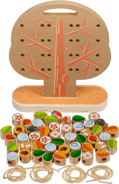 Objavte kreatívnu montessori hračku Lucy & Leo drevený šnurovací strom, ktorá rozvíja jemnú motoriku, koordinačné schopnosti a kreativitu. Deti pomocou šnúrok a drevených dielikov „obliekajú“ strom do jarnej, letnej, jesennej aj zimnej podoby a učia sa farby aj tvary hravou formou.