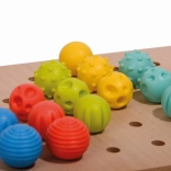 Set obsahuje 35 kolíčkov s rozdielnymi štruktúrami povrchu, ideálne pre senzorický rozvoj detí.