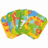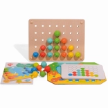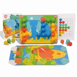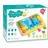 Mozaika a vyšívanie je skvelým nástrojom pre malé deti na rozvoj jemných motorických zručností a kreativity. Obsahuje 35 veľkých silikónových kolíčkov v siedmich výrazných farbách, ktoré deti môžu využiť na vypĺňanie farebných predlôh. Set tiež obsahuje 12 farebných obrázkov so zvieratami a 6 obojstranných šablón.