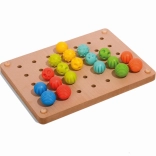 Drevený podstavec s otvormi umožňuje jednoduché umiestnenie kolíčkov, zatiaľ čo farebné šnúrky pridávajú ďalší rozmer hry – možnosť vyšívania. Vlastnosti tejto hračky z nej robia výnimočný vzdelávací nástroj, ktorý je tiež využívaný v Montessori prostredí.