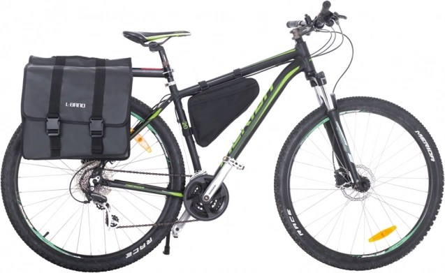 Taška s dvoma oddelenými priehradkami umožňuje rovnomerné rozloženie záťaže, čo zaisťuje lepšiu stabilitu a pohodlie pri jazde.