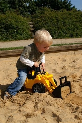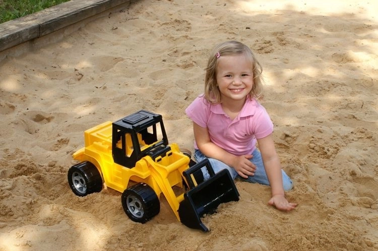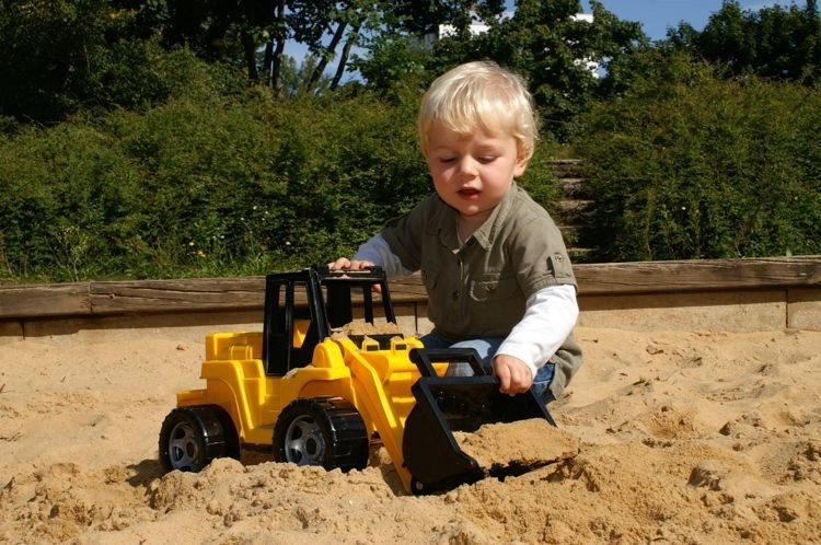 Statická nosnosť až 100 kg svedčí o pevnej konštrukcii a bezpečnom vyhotovení. Hra s nakladačkou podporuje jemnú aj hrubú motoriku, koordináciu pohybov a tvorivú hru.