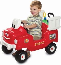 Deti môžu nastúpiť do tohto červeného retro hasičského vozidla a užiť si tvorivú hru. Autíčko je poháňané detskými nožičkami alebo môže byť tlačené dospelou osobou, čo umožňuje zábavu aj pre menšie deti. Vďaka ľahko odnímateľnej 9-litrovej nádrži s hadicou je voda vždy poruke na hasenie imaginárnych požiarov.