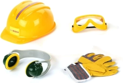 Detská sada dielenských doplnkov s licenciou BOSCH poteší malých kutilov. Obsahuje helmu, ochranné rukavice, ochranné okuliare a ochranu sluchu, aby sa každý malý opravár cítil ako skutočný profesionál.
