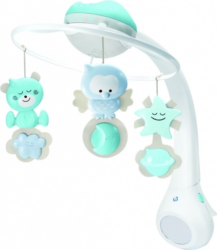Tento všestranný kolotoč rastie s vaším dieťaťom: od novorodeneckého obdobia ako kolotoč s jemným svetlom a hudbou (0–5 mesiacov), cez nočnú lampičku s hudbou na postieľku (6–18 mesiacov), až po samostatnú lampičku s hudbou na nočný stolík (18+ mesiacov). Projektor premieta hviezdičky a vytvára pokojnú atmosféru pre ľahké zaspávanie.