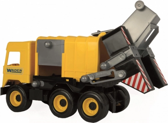Auto má funkčný zadný nakladač, ktorý uľahčuje nakladanie a vysýpanie „odpadu“ z priloženej popolnice. Svieže žlté prevedenie s čiernymi detailmi a šesť kolies zabezpečujú stabilitu a hladký pohyb po rôznych povrchoch.