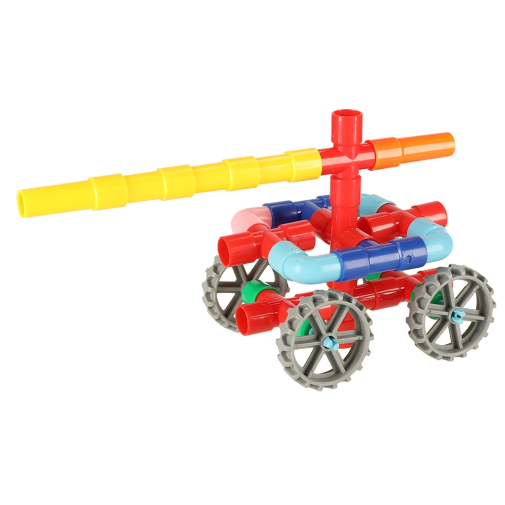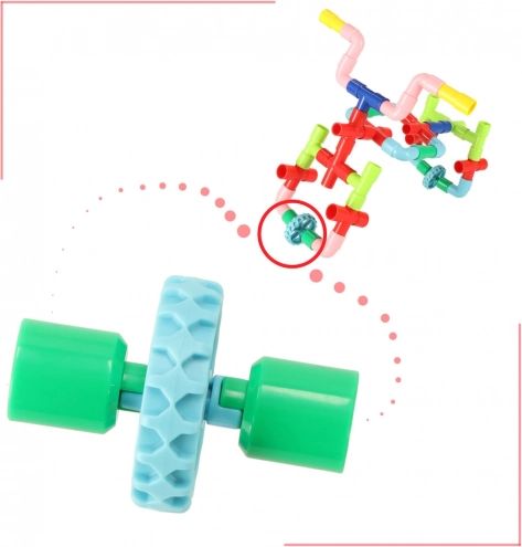 Objavte farebné stavebné kocky pripomínajúce vodné rúrky s 84 kusmi, vrátane kolies. Podporte rozvoj kreativity a motorických zručností vášho dieťaťa s touto ideálnou hračkou pre hru doma aj vonku.