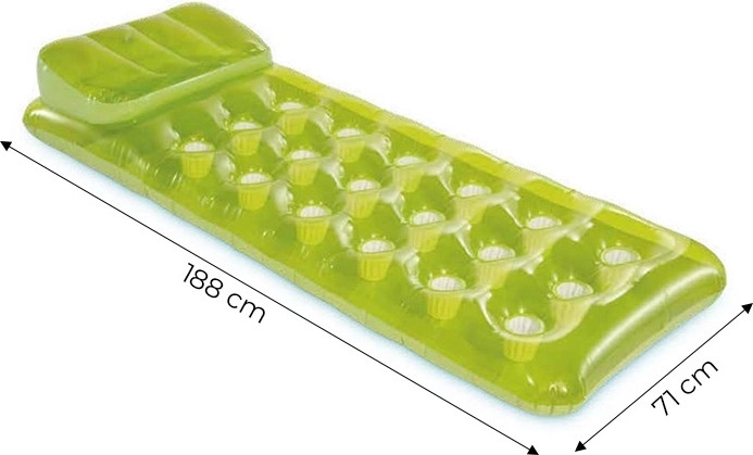 Užite si leto naplno s nafukovacou matracou Intex s rozmermi 188 × 71 cm v sviežej zelenej farbe. Vďaka stabilnej konštrukcii COLI-BEAM, dvom vzduchovým komorám a odolnému PVC ponúka výbornú stabilitu, pohodlné ležanie a dlhú životnosť. Ideálna do bazéna, jazera aj mora, s nosnosťou až 100 kg a opravnou záplatou v balení.