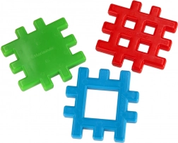 Kocky s rozmerom cca 10,5 × 10,5 cm sa deťom ľahko uchopujú a bezpečne spájajú. Ideálna prvá stavebnica pre predškolákov.