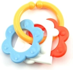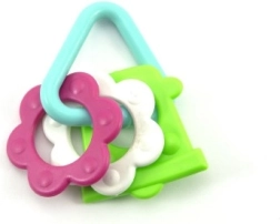 Naše farebné plastové hryzátko je navrhnuté pre malé rúčky, ktoré sa ľahko chytia každého z jeho tvarov. Vďaka jeho rôznorodosti bude Vaše bábätko stimulovať ako zmysly, tak aj ďasná.
