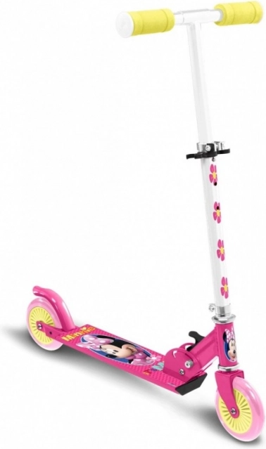 Kolobežka vyniká jasne ružovou farbou so žltými prvkami a krásnymi obrázkami Minnie Mouse, ktoré okamžite zaujmú každé dieťa.