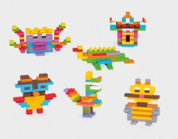 Klasický tvar blokov je vyrobený z bezpečného gumového materiálu, ktorý už nájdete v obľúbených blokoch Mini Waffle. Klasické bloky sú pevné a jednoduché a umožňujú stavať kompaktné a odolné konštrukcie. Päť veľkostí kociek ponúka širokú škálu možností na stavanie a rozvíjanie detskej fantázie. V tejto sade nájdete 350 dielikov v rôznych farbách.