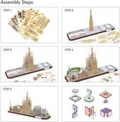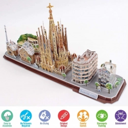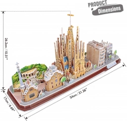 Puzzle 3D City Line Barcelona sú vzrušujúcou zábavou pre deti aj dospelých. Cityline je jedinečná rada od výrobcu Cubic Fun, ktorá zobrazuje panorámu konkrétneho mesta spolu s jeho najcharakteristickejšími pamiatkami. Balenie obsahuje 186 dielikov zo špeciálneho penového materiálu. Puzzle sú očíslované, vyrezané a umiestnené na archy. Stačí bez použitia sily vytlačiť diel z archu a zostaviť ho podľa priloženého návodu, bez použitia lepidla alebo špeciálnych nástrojov.