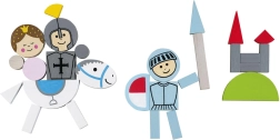 Magnetická tabuľka a stojančeky udržia všetky dieliky na mieste. Deti si ľahko vytvoria vlastné stredoveké výjavy, ktoré môžu kedykoľvek obmieňať.