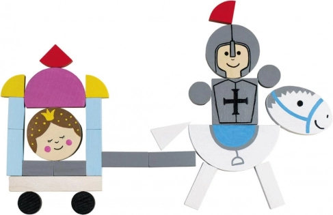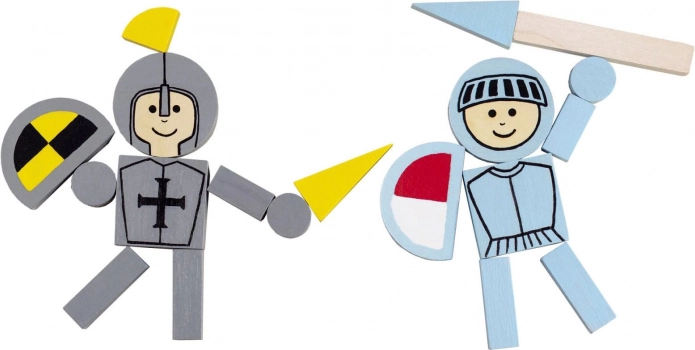 Farebné drevené prvky s hladkým povrchom umožnia deťom skladať rytierov, štíty, kopije aj končatiny – ideálne na rozvoj motoriky a predstavivosti.
