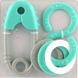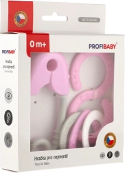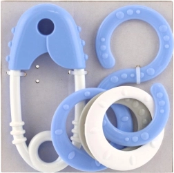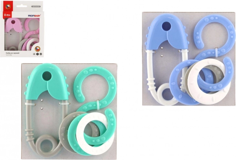 Roztomilá chrastiaca sada pre najmenších v pastelových farbách kombinuje tvar špendlíka a osmičky. Podporuje rozvoj zmyslov, trénuje úchopový reflex a je vyrobená bez ostrých hrán a malých uvoľniteľných častí.