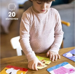 CzuCzu Puzzle Skladám Zvieratká je sada piatich jednoduchých skladačiek, ideálnych už pre dvojročné deti. Každá skladačka obsahuje 4 dieliky, čo podporuje koordináciu a tvorivé myslenie.