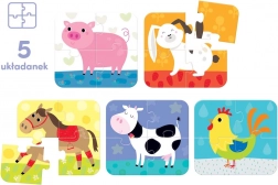 CzuCzu Puzzle Skladám Zvieratká prináša sadu piatich skladačiek s motívmi obľúbených zvieratiek detí: koník, kravička, kuriatko, prasiatko a králik. Sú perfektné pre rozvoj detskej koordinácie a logického myslenia už od útleho veku.