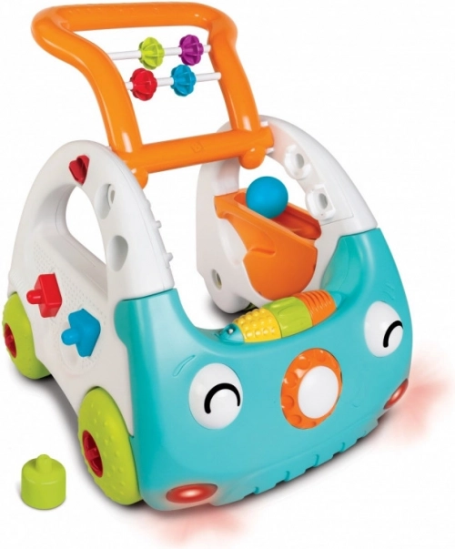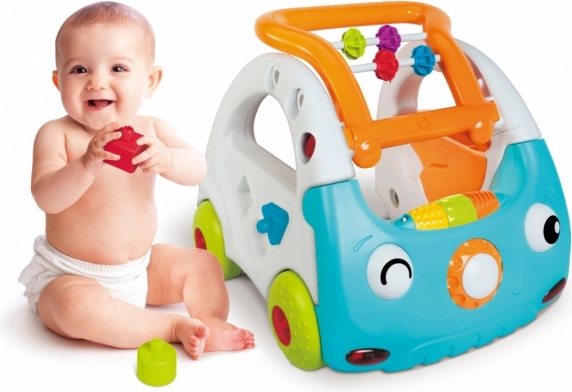 - Riadidlá možno nastaviť podľa výšky dieťaťa a kolieska je možné zablokovať, aby autíčko slúžilo ako stabilná opora pre dieťa, ktoré sa učí stáť a udržiavať rovnováhu.