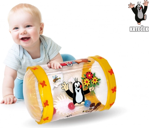 Zábavný nafukovací valec s motívom obľúbeného Krtka prináša deťom od 6 mesiacov množstvo radosti a objavovania. Pestré obrázky a farebné rolničky podnecujú fantáziu, rozvíjajú koncentráciu aj motorické zručnosti. Vďaka tvaru poskytuje oporu pri prvých pokusoch o státie a podporuje vnímavosť a prvé slovíčka.