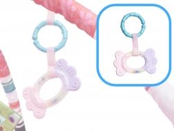 - Podložka s hračkami zavesenými na oblúkoch: Farebné hračky priťahujú pozornosť bábätka a motivujú k posilňovaniu svalov krku, paží a nôh.