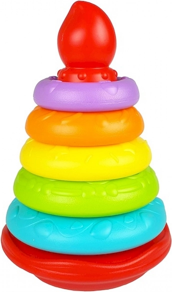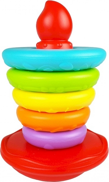 Táto pestrofarebná stavebnica poskytuje skvelú príležitosť pre deti hrať sa a zároveň rozvíjať svoje schopnosti. Kruhy v rôznych farbách a veľkostiach stačí umiestniť na hojdačkový základ, čím sa deti učia rozpoznávať farby a veľkosti.