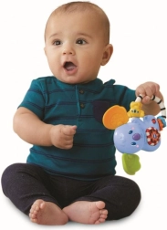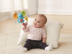 Ľahko uchopiteľná rukoväť a krúžky na hrkálke pomáhajú rozvíjať schopnosti uchopenia a pohybu.