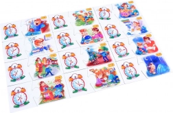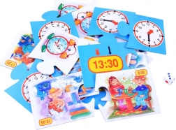 Sada obsahuje 24 dielikov, ktoré tvoria 12 párov. Každý pár sa skladá z dvoch puzzle dielikov - jeden s ručičkovými hodinami a druhý s digitálnymi hodinami, ktoré ukazujú rovnaký čas.