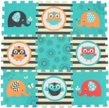 Penová skladačka s motívmi Sovy a Slona v živých farbách upúta pozornosť každého dieťaťa.