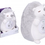 Roztomilý plyšový ježko upokojí vaše bábätko jemnou melódiou či šumením a vďaka projektoru na brušku vykúzli na stenách aj strope nočnú oblohu plnú hviezd a farieb. Ideálne od narodenia na pokojné zaspávanie a navodenie príjemnej atmosféry.
