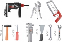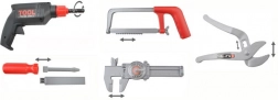 - Realistické funkcie: otáčavý vrták, pohyblivá píla, skrutkovače na prikladané skrutky a matice.