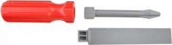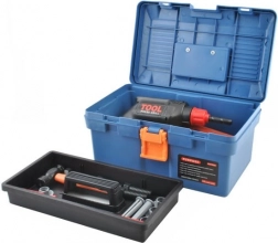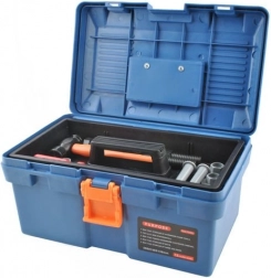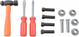 - kufrík, ručná vŕtačka, kladivo, skrutkovač krížový, skrutkovač plochý, skrutky a matice, ručná píla, nastaviteľný kľúč, očkový kľúč, nástrčný kľúč, plochý kľúč, posuvné meradlo, špachtľa, pilník (výmenný nadstavec), vodováha, uhlomery, spojovacie diely s otvormi