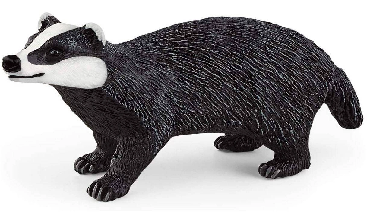 Jazvec je nočná šelma s typickým čierno‑bielym sfarbením, robustným trupom a silnými labami. Táto figúrka verne zachytáva jeho vzhľad aj proporcie, takže sa skvele hodí na vzdelávacie hry aj ako dekorácia do detskej izby.