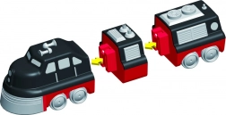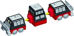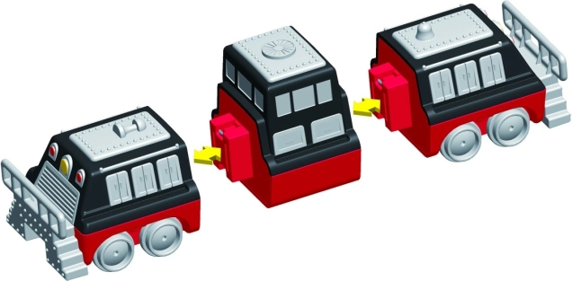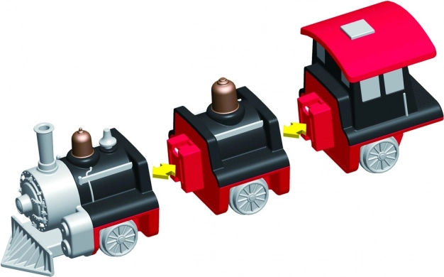 V balení je 9 dielov, z ktorých zložíte 3 pripravené vlaky. Zmenou modulov vytvoríte desiatky originálnych variantov bez obmedzenia fantázie.