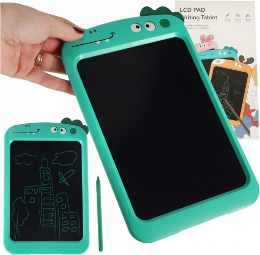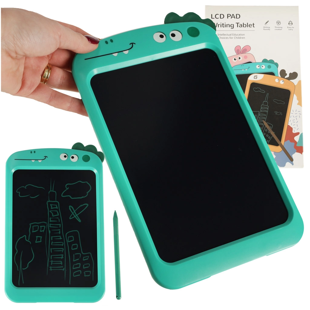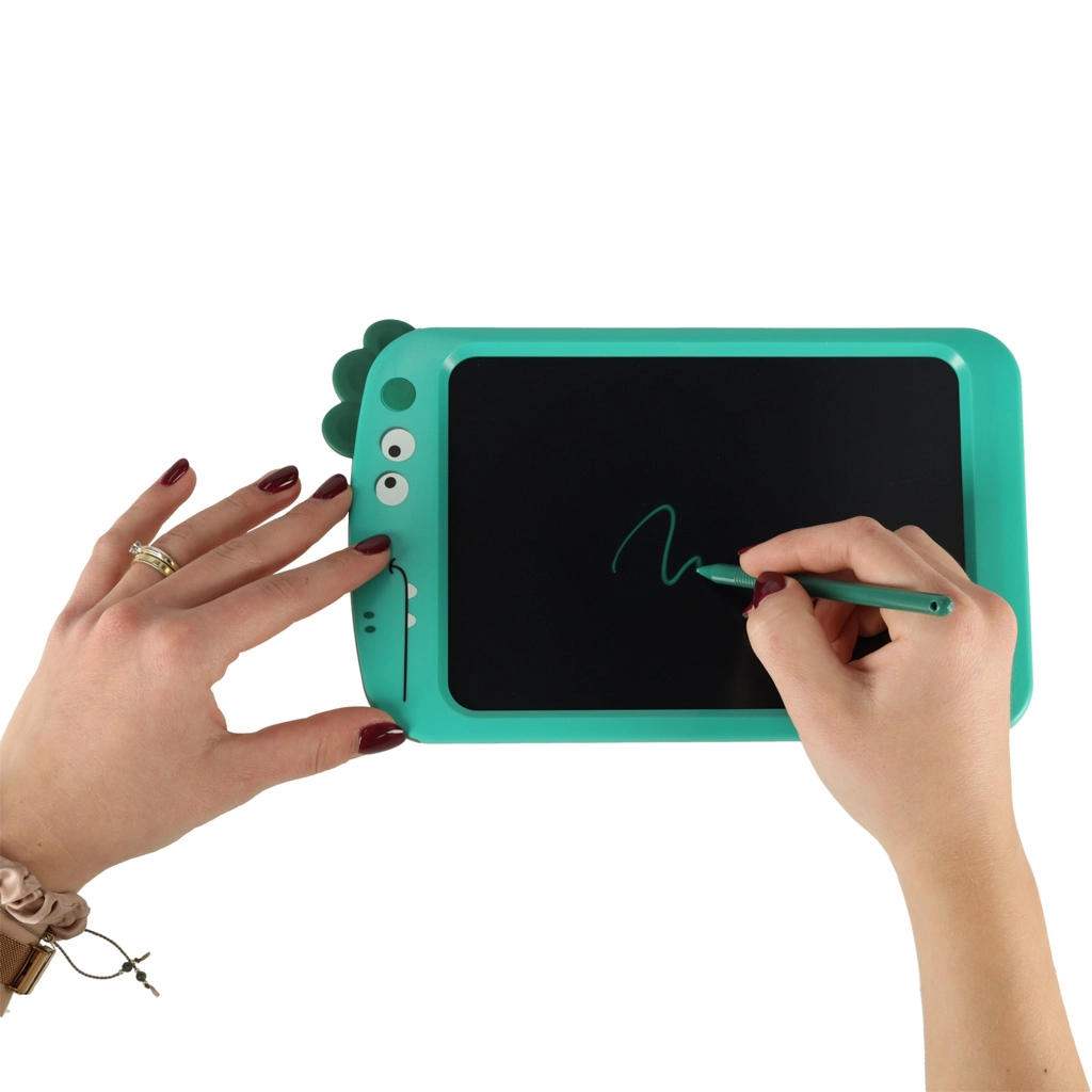 Náš tyrkysový kresliaci tablet s motívom dinosaurov je stvorený pre malých umelcov. Je vybavený čiernou plochou na písanie a stylusom, čo deťom umožňuje rozvíjať ich kreativitu a motorické zručnosti. Tablet nahrádza tradičné papierové bloky a jeho hlavnou prednosťou je, že je bezpečný pre oči, pretože nevydáva žiadne škodlivé žiarenie.