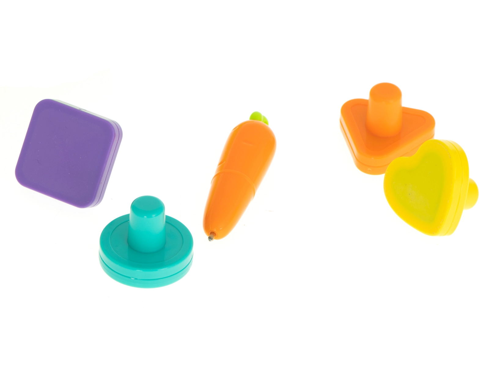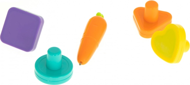 - Interaktívna tabuľka, ryska v tvare mrkvy, 4 pečiatky rôznych tvarov